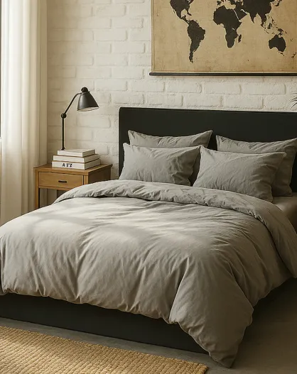 Housse de couette en percale de coton lavé gris perle