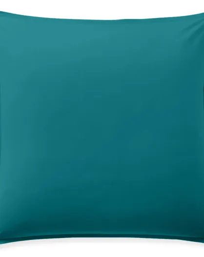 Taie d'oreiller avec volant en percale de coton lavé bleu canard