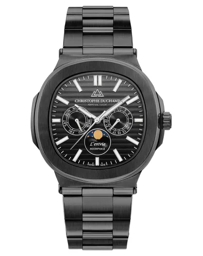 Montre Homme Quartz en Acier L'Envie Moonphase noire