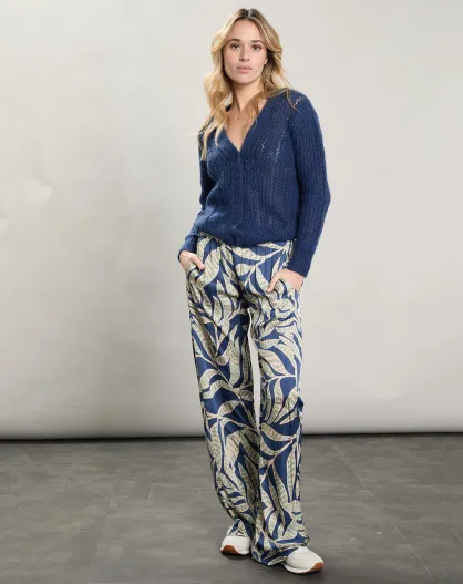 Pantalon satiné Plaisance bleu/bleu clair