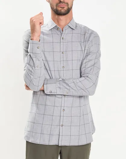 Chemise Slim Fit en Flanelle à carreaux gris clair