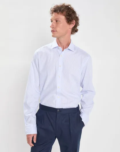 Chemise Regular Fit Washed Soft à rayures bleu clair