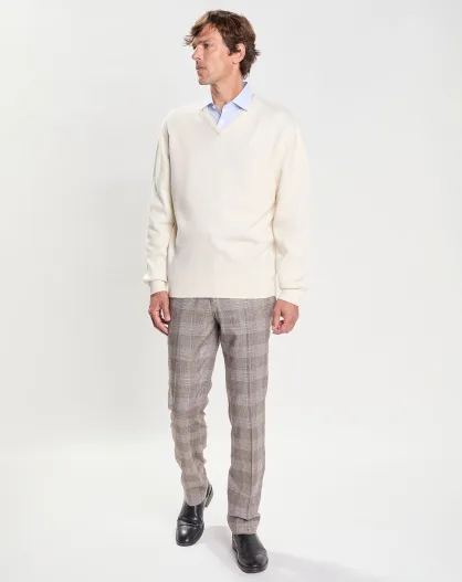 Pantalon en Laine mélangée imprimé Prince de Galles beige