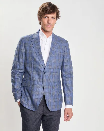 Veste en Soe & Laine à imprimé Prince de Galles bleue