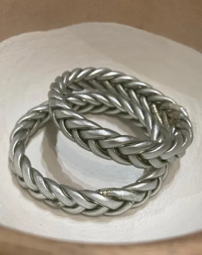 Bracelet Bouddhiste Tressé Epais argenté mat