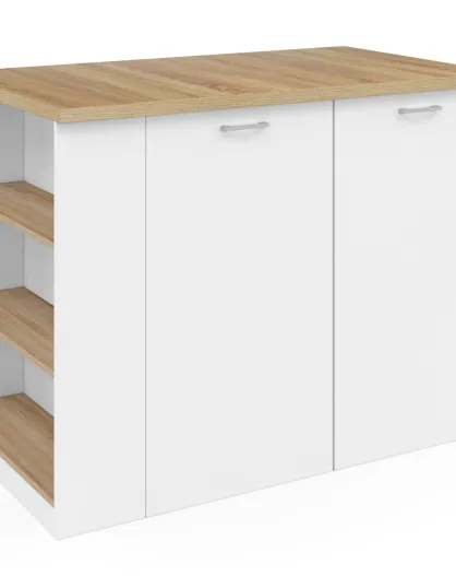 Ilot central de cuisine Dario avec rangements bois/blanc - 120x70x90 cm