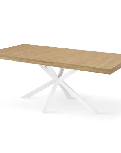 Table repas extensible Memphis plateau avec rangement bois/blanc - 160-200x90x75.5 cm