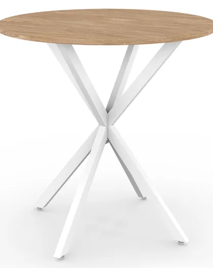 Table repas Soline plateau rond pieds croisés bois/blanc - D.80x75 cm