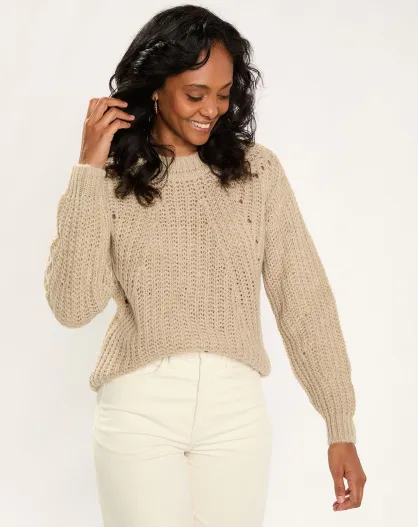 Pull en Laine mélangée Torsade écru