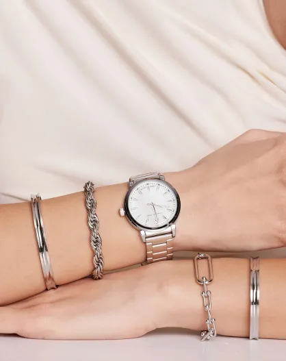 Montre en quartz pour femme rayons de soleil argentée