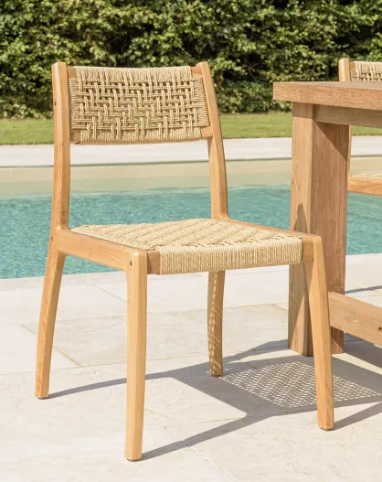2 Chaises jardin teck rotin synthétique tressé bois - 48x59.5x84 cm