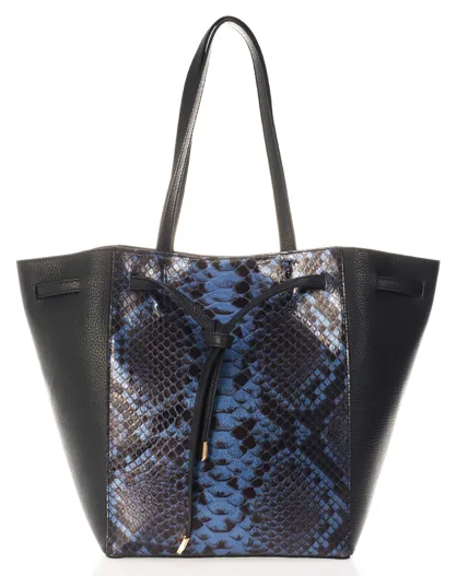 Cabas en Cuir noir/bleu - 40x17x30 cm