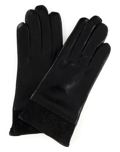 Gants en Cuir d'Agneau doublure Laine Carol noirs