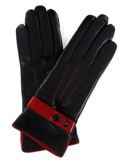 Gants en Cuir d'Agneau doublure Laine Gillian rouge/noir