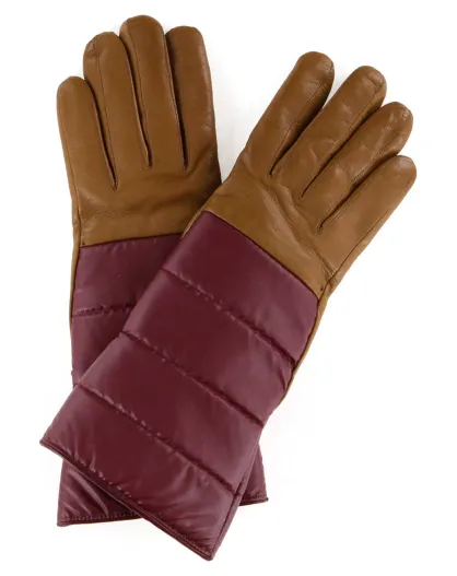 Gants en Cuir d'Agneau doublure Cachemire Gonfle chameau/vino