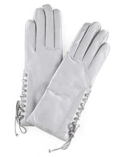 Gants en Cuir d'Agneau doublure Laine Kelis argentés