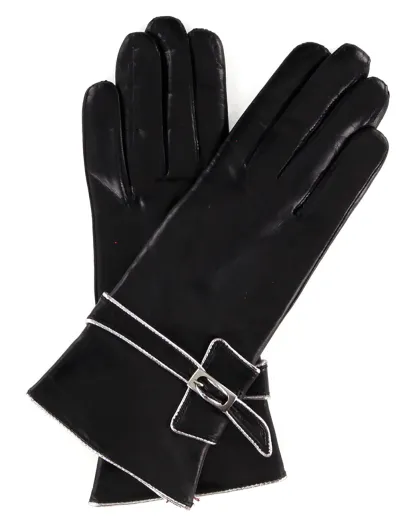 Gants en Cuir d'Agneau doublure Laine Leila noirs