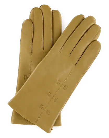 Gants en Cuir d'Agneau doublure Laine Noeud chameau clair