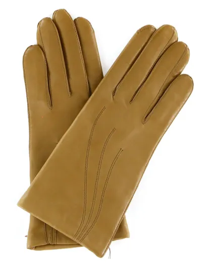 Gants en Cuir d'Agneau doublure Laine Waves chameau clair