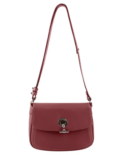 Sac bandoulière en Cuir Paris rouge bordeaux - 25x18.5x7.5 cm