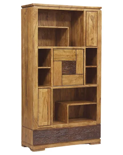 Bibliothèque bois sculpté bicolore acacia maya brun/miel - 110x40x200 cm