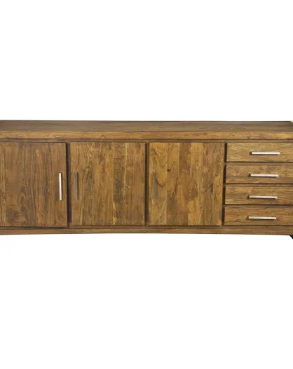 Buffet 3 portes 4 tiroirs gm acacia stainless marron - 219x45x85 cm