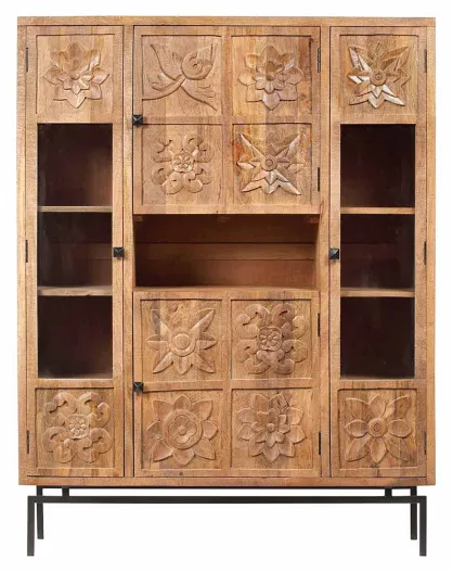 Bibliothèque 4 portes manguier sculpture naturel - 12x40x155 cm