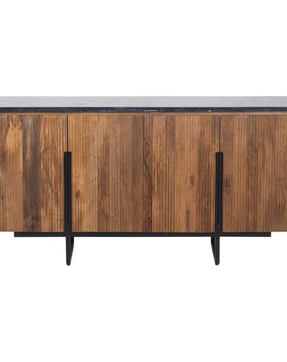 Buffet bois plateau marbre noir manguier kfir naturel ciré - 160x40x75 cm