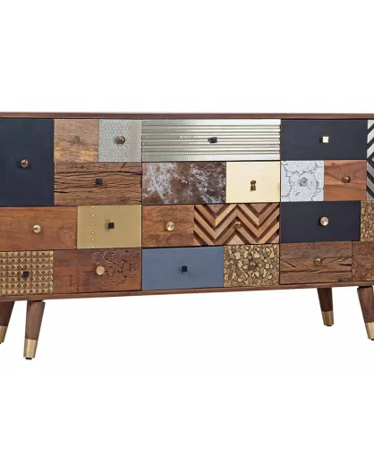 Meuble d'entrée peau de vache bois sculpté manguier terranova miel clair - 150x40x78 cm