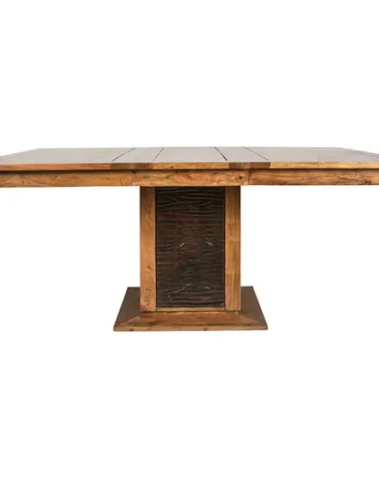 Table à manger carrée bois sculpté bicolore acacia maya brun/miel - 130x130x76 cm