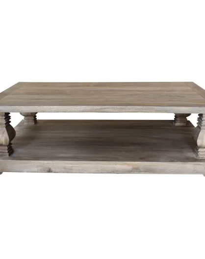 Table basse rectangulaire double plateau manguier empereur gris vintage - 150x90x45 cm