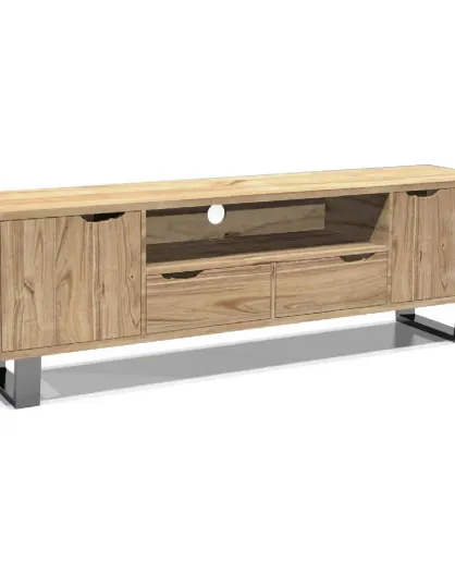 Meuble tv 2 portes 2 tiroirs en acacia massif forest brut - 190x40x60 cm