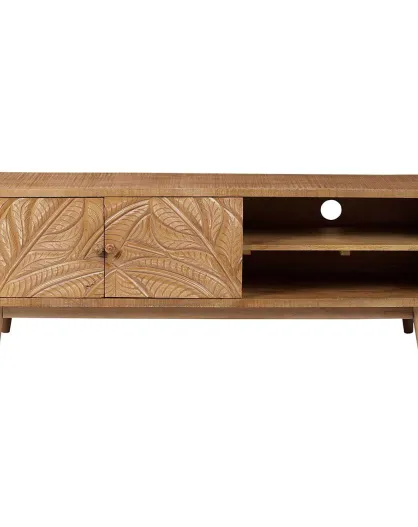 Meuble tv 2 portes 2 niches manguier floria marron - 153x45x50 cm