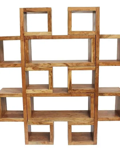 Bibliothèque asymétrique acacia greco miel - 75x30x185 cm