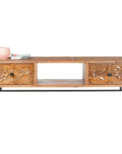 Meuble tv 2 tiroirs, 1 niche manguier Sculpture naturel - 158x50x57 cm