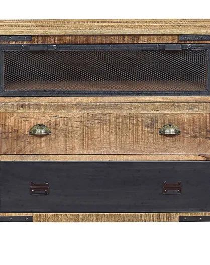 Commode 3 tiroirs bois brut et métal manguier farm marron - 100x45x90 cm