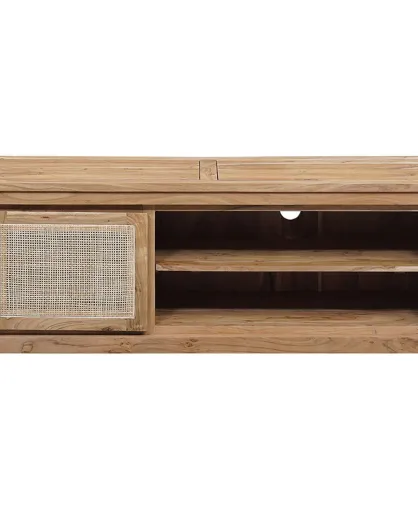 Petit meuble tv bois nature porte cannage acacia tatoo naturel - 140x45x55 cm