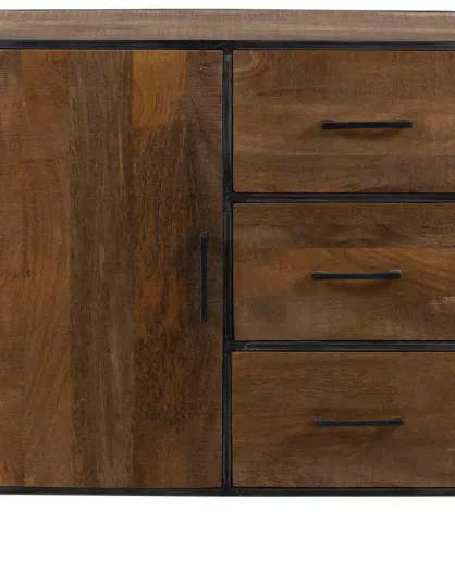 Buffet 1 porte 3 tiroirs manguier stockholm naturel ciré - 90x40x90 cm