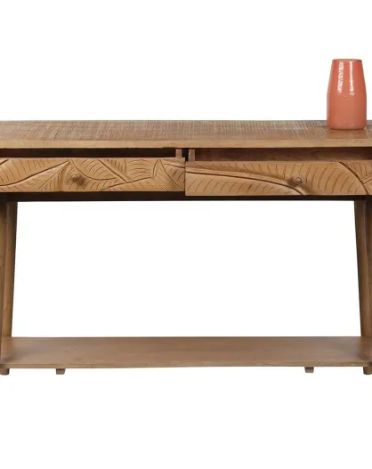 Console sculptée 2 tiroirs manguier floria marron - 130x70x45 cm