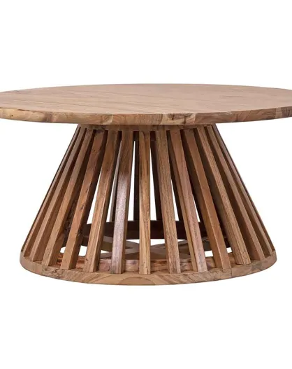Table basse ronde bois massif acacia kfir naturel ciré - 86x86x40 cm