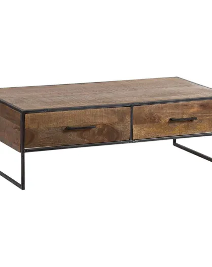Table basse 2 tiroirs manguier stockholm naturel ciré - 120x60x40 cm
