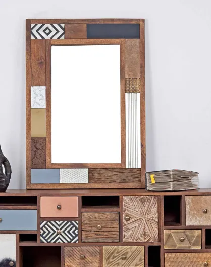 Miroir peau de vache bois sculpté manguier terranova marron - 100x4x70 cm