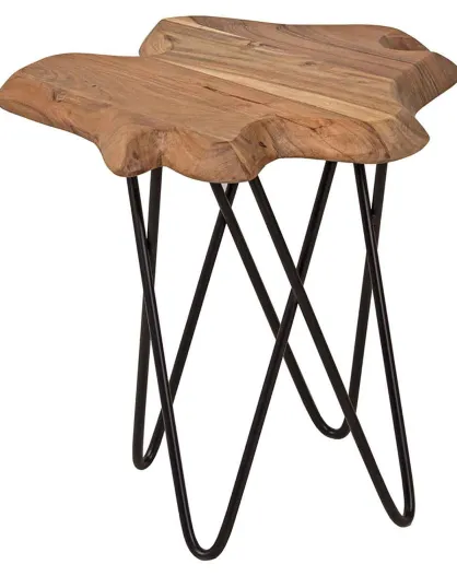 Bout de canapé plateau bois brut acacia racine naturel - 50x50x50 cm