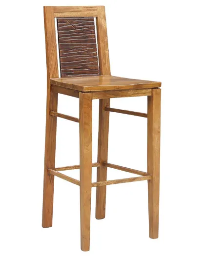 Tabouret de bar bois sculpté bicolore acacia maya brun/miel - 45x47x110 cm