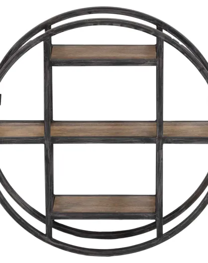 Étagère ronde murale manguier london marron - 60x15x60 cm