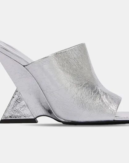 Mules en Cuir Cheope argentées - Talon 10.5 cm