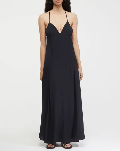 Robe en Soie mélangée Marocain Crepe Slip noire