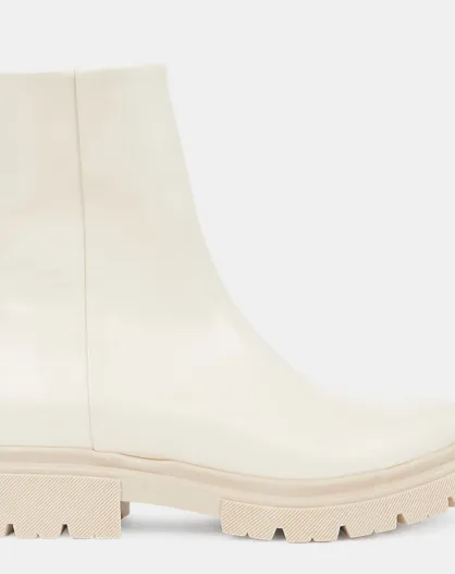 Boots zippé en Cuir lisse beiges - Talon 4 cm