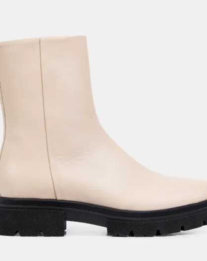 Boots zippé en Cuir lisse beiges - Talon 4 cm