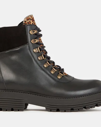 Boots en Cuir plateau poulain noirs - Talon 5 cm